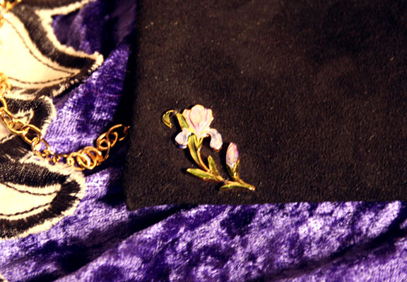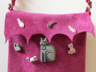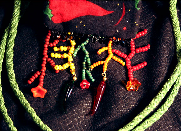 One day I was in a local leather shop and saw some beautiful, soft pigskin leather. I couldn’t help but pick it up and marveled at its smooth, silky texture, its perfectly dyed black color and how unlike it was from the thick, stiff hides all around it. There were many other colors, but I kept going back to that luscious little piece, as if it were calling me to do something with it. It was a perfect canvas upon which to bead and I realized in my joy of its discovery that it was thin enough to run through my mother’s old Singer sewing machine. I had to buy it!