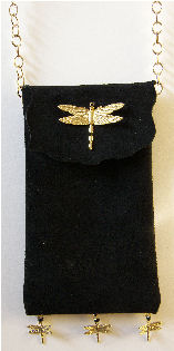 After the time-intensive labor of love I had put in on Dragonfly Moon, I wanted to do something with the black leather. Before that, I had done a number of cell phone pouches with the black that were simple, but I wanted to push the boundaries with my next sacred bag. Thus Dragonfly and her Family (or Dragonfly Moon #2) was born.