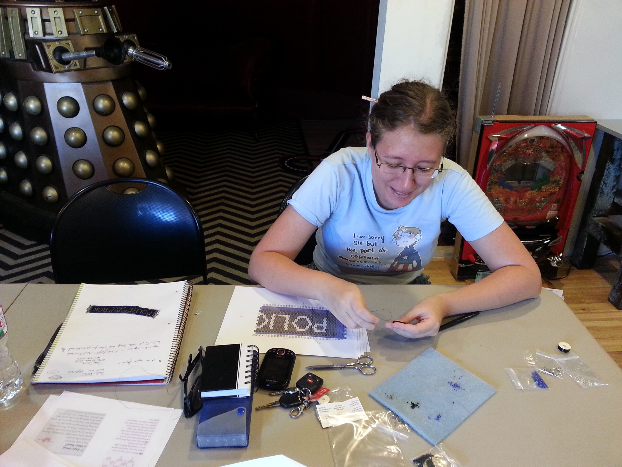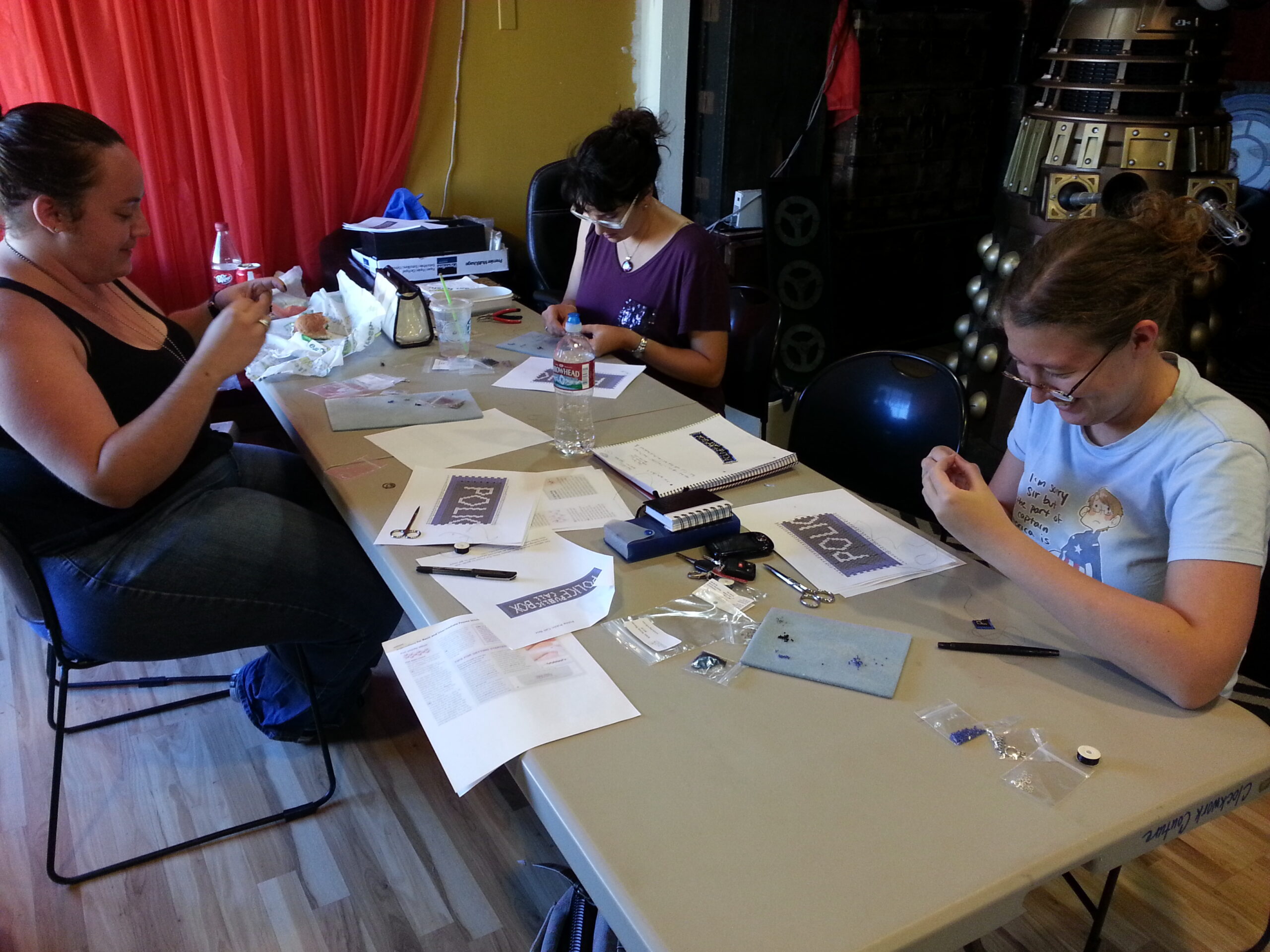 Come make a custom Doctor Who bracelet and learn peyote stitch beadwork. Kristine of KC Dragonfly and the Corsair’s Closet will give you one-on-one instruction and all the materials to make this awesome piece of jewelry in tribute to everyone’s favorite time travelling conveyance. If you enjoyed her parasol design class in May, you’ll love this fun project as much if not more!
