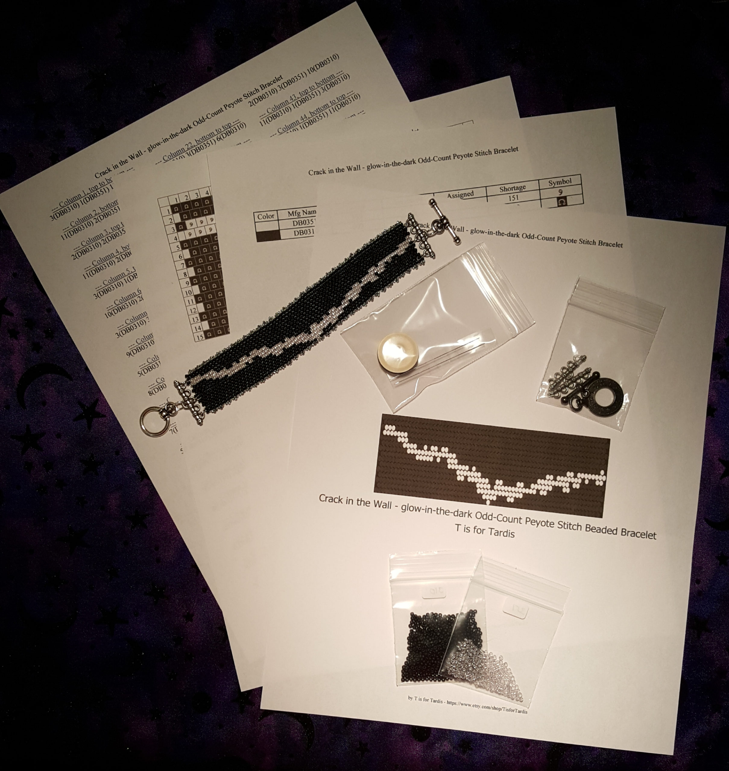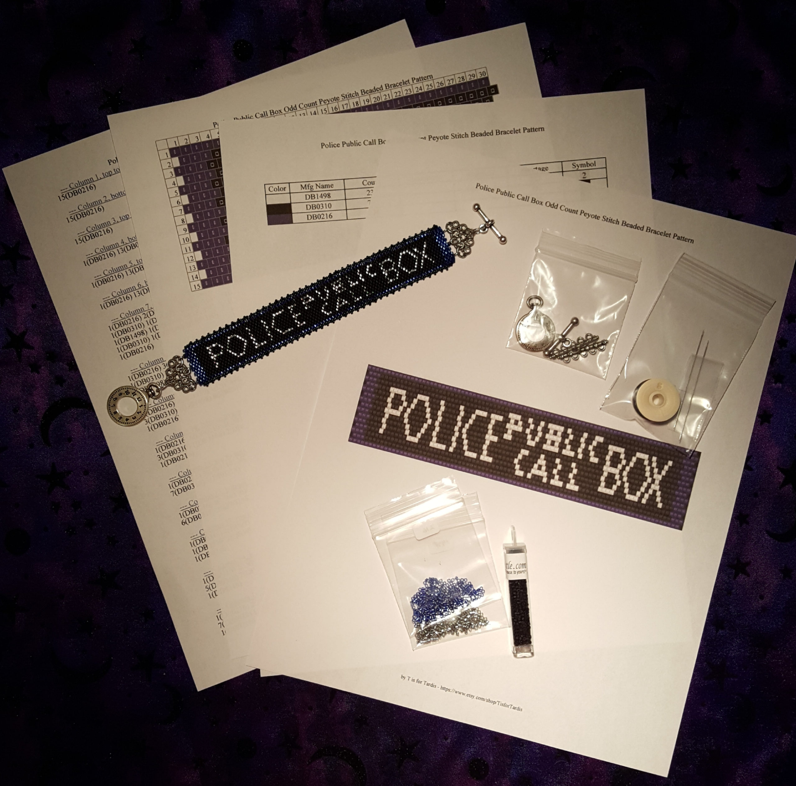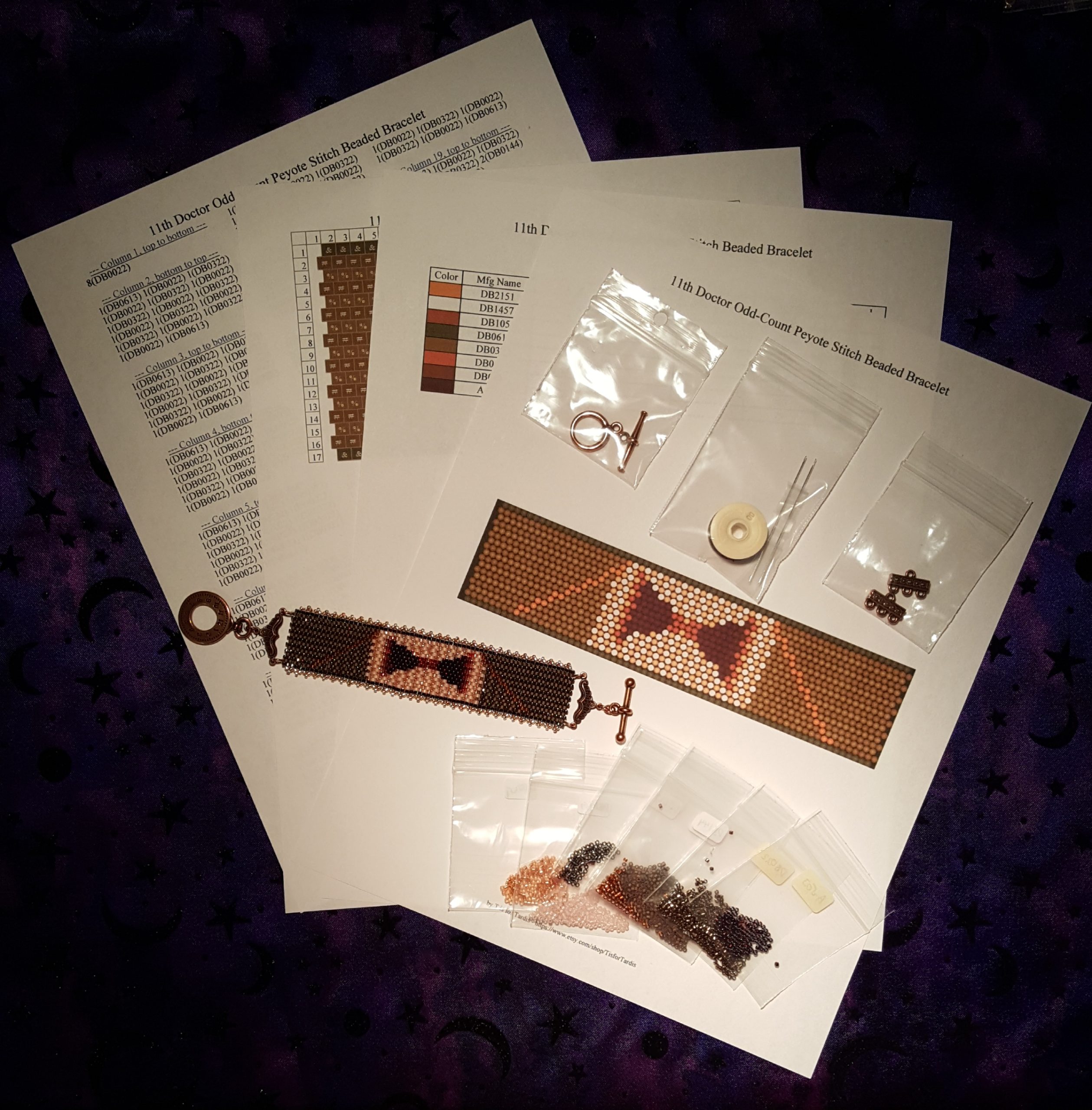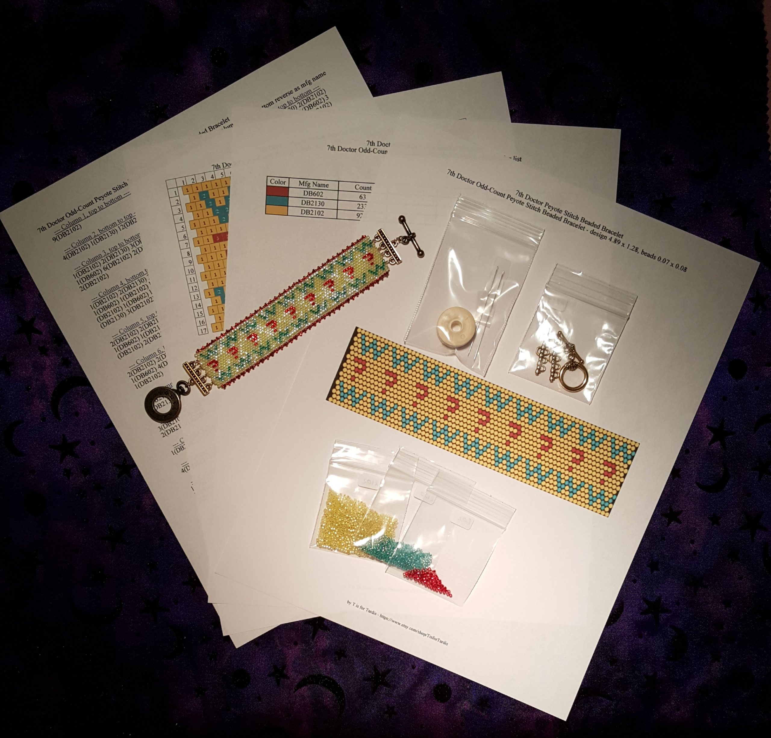 Commissions are closed for deliveries to our customers at Gallifrey One, which is in TWO DAYS. Man, after the Christmas season died down, #gally1 sure came at us like a freight train! I will have patterns, kits and fully-made bracelets on ‘site if you want to purchase them and will have my credit card processing chip on me at all times if you don’t have the cash flow to do an impulse purchase. Here are the items that will be available for on ‘site sales: